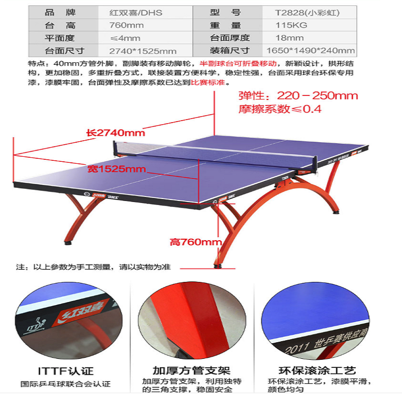 紅雙喜T2828-折疊式乒乓球臺(tái)